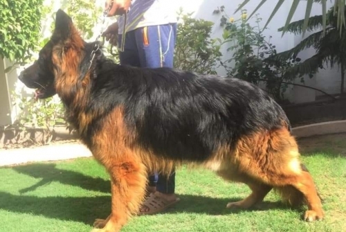 Very type full & expressive, dry, very well pigmented, big, strong, dry, firm, very good body proportions. High long withers, harmonious top & underline, very good length & placement of croup. .straight front. Correct movement, very fleeting ground-covering, good movement with very strong hind thrust & free front reach. Positive nerves. |
