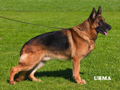 Groß, gefügefest, sehr guter Gesamtaufbau, guter Kopf und Ausdruck, fester Rücken, normale Kruppenlage und -länge, korrekt gewinkelt, gute Vor- und Unterbrust. Gerade Front und Schrittfolge, raumgreifendes Gangwerk, erhabener Bewegungsablauf. TSB ausgeprägt; läßt nicht ab. |