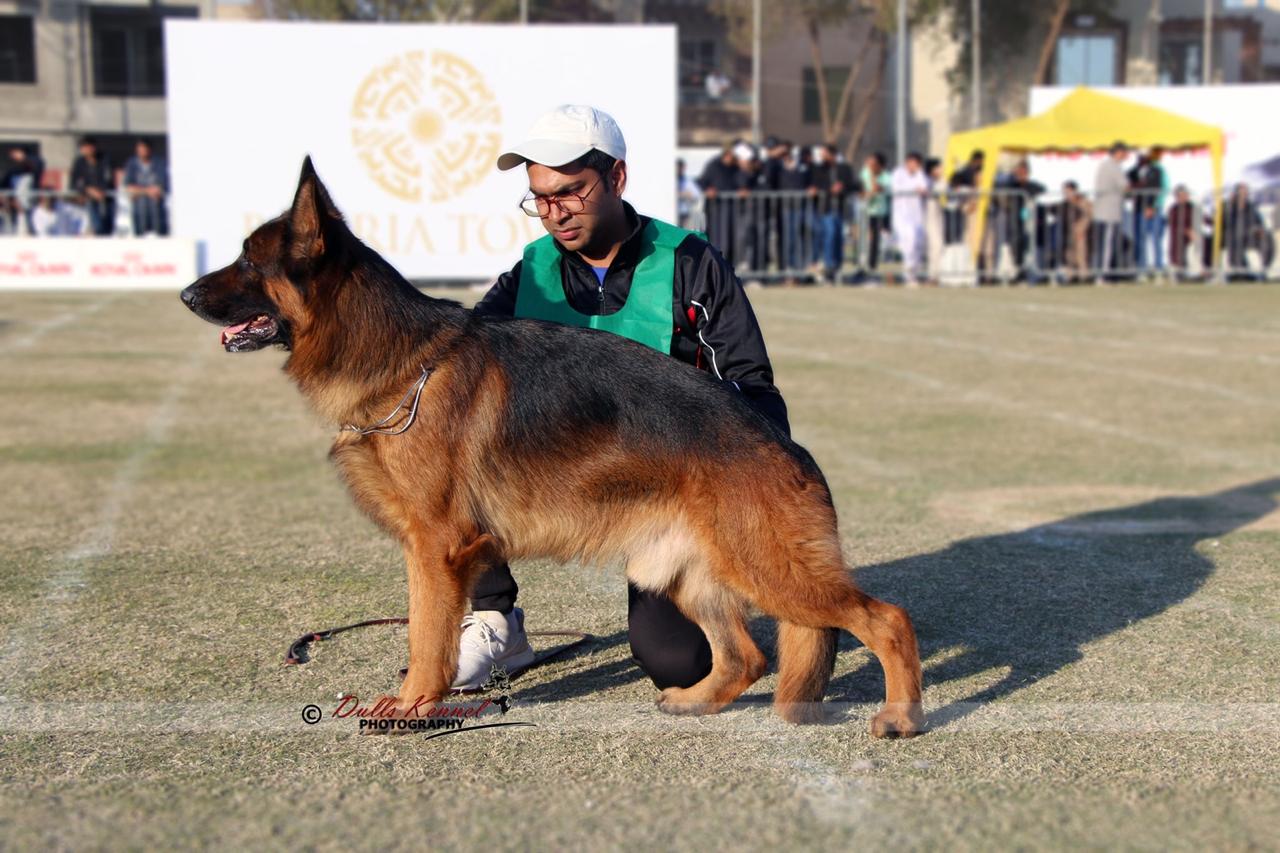 Very well pigmented, impressive male of very good type and proportions. Good angulations fore and very good rear angulations. Croup can be a little longer and less steep. Moves very well, holding a good outline at all speeds.  |