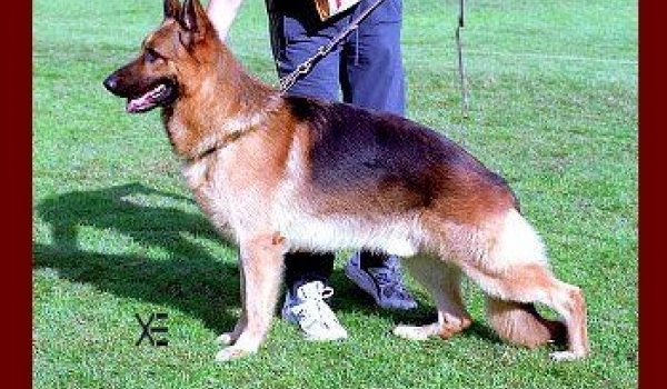 Große, kraft- und gehaltvolle Hündin mit sehr gutem Ausdruck. Hoher Widerrist, gerader Rücken, gute Kruppenlage und - länge, sehr gute Winkelungen der Vor- und Hinterhand, gerade Front, raumgreifende, kraftvolle Gänge mit betont wirksamem Nachschub und freiem Vortritt. TSB ausgeprägt; läßt ab. |
